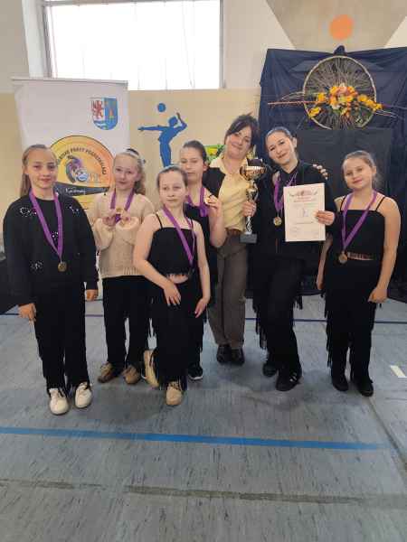 Zuzia, Natalia, Zosia, Julia, Alicja, Agata, Michalina, Lena, Olga i Maja zachwyciły publiczność oraz jury swoją energią, precyzją i dojrzałością sceniczną. Ich występ w kategorii formacje jazz dance (13–14 lat) był pełen dynamiki, spójności i wyrazu artystycznego. To zaangażowanie i wysoki poziom zostały docenione - dziewczyny zdobyły 1 miejsce.